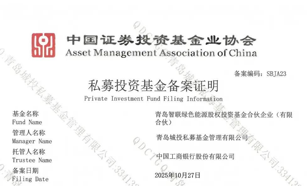 市級基金改革首單落地!青島城投發(fā)起組建的智聯(lián)綠色能源基金成功備案